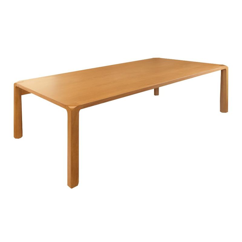 A Mesa Duna é uma peça de presença marcante, projetada para ser o destaque absoluto da sala de jantar. O grande diferencial é o imponente tampo laminado de 43mm de espessura, que apresenta um sofisticado acabamento em Canto Chanfrado. O design inovador desta mesa traz o tampo visualmente anexado aos pés, criando uma unidade estética contínua que transmite solidez e modernidade. É o móvel perfeito para quem busca um design arquitetônico que une a força da madeira com linhas minimalistas.