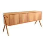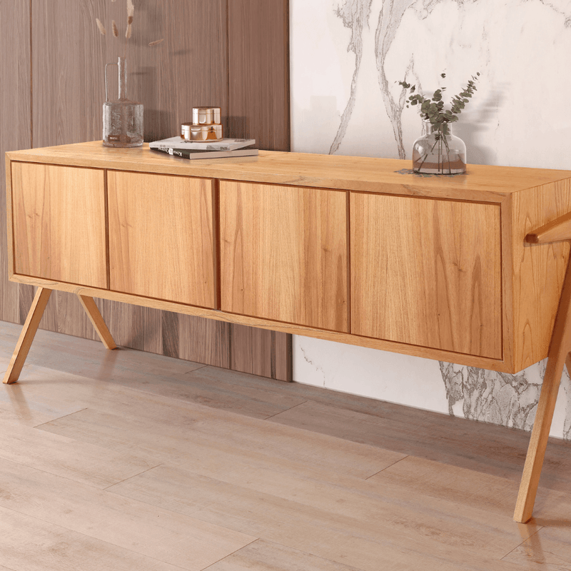 O Buffet Raza é o equilíbrio perfeito entre a funcionalidade necessária para o dia a dia e a presença marcante de uma peça de design escultural. Com um visual que celebra a autenticidade da madeira, ele transforma a organização da sua sala de jantar em uma declaração de estilo. Sua estrutura em MDF laminado, aliada aos robustos pés em madeira maciça, garante não apenas durabilidade, mas uma estética sofisticada que destaca os veios naturais nos acabamentos Cinamomo ou Nogueira.