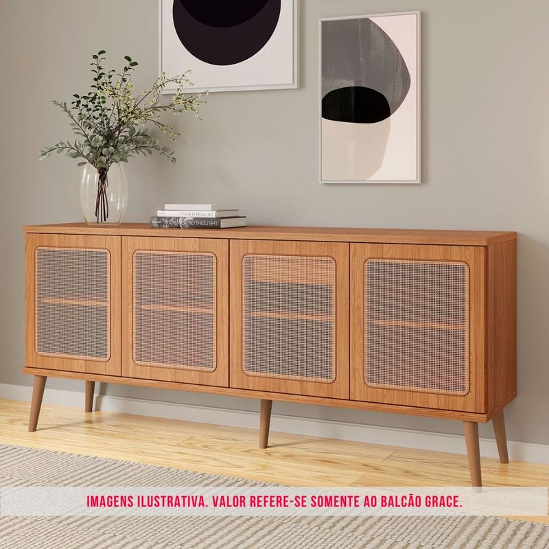 Descubra o Balcão Grace, uma peça que harmoniza elegância e funcionalidade em uma construção meticulosamente pensada para transformar qualquer ambiente. Confeccionado com estrutura 100% MDF na tonalidade freijó, apresenta linhas clean e um acabamento que valoriza a madeira de forma suave e contemporânea. O revestimento, com pintura UV, garante brilho sofisticado e alta resistência, mantendo a cor fiel e resistente ao desgaste do dia a dia.Projetado para oferecer conforto de uso e silêncio, o Grace vem equipado com dobradiças com amortecedor, assegurando portas que se fecham com suavidade e sem ruídos, além de um sistema de abertura das portas com click, que facilita a operação com um clique imediato ao alcance dos dedos. As portas são adornadas com palha sintética, conferindo um toque texturizado e moderno, que agrega personalidade e facilita a manutenção.A peça contempla ainda uma gaveta interna, ideal para guardar utensílios, documentos ou itens diversos de forma organizada, sem comprometer o espaço útil do ambiente. Os pés em madeira completam o conjunto com robustez e elegância, elevando o balcão para uma altura prática e ergonômica. Com 180 cm de comprimento, o Balcão Grace oferece ampla superfície de apoio e área de armazenamento integrada, tornando-se a escolha perfeita para cozinhas, salões ou ambientes comerciais que buscam design contemporâneo aliado à funcionalidade eficiente.