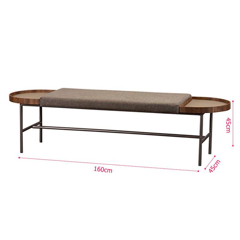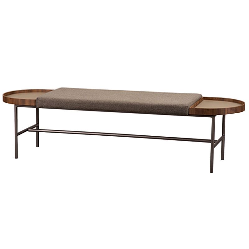 • Com suas duas bandejas laterais em lâmina de madeira na sofisticada tonalidade nogueira, este banco adiciona um toque acolhedor e estiloso ao seu espaço.