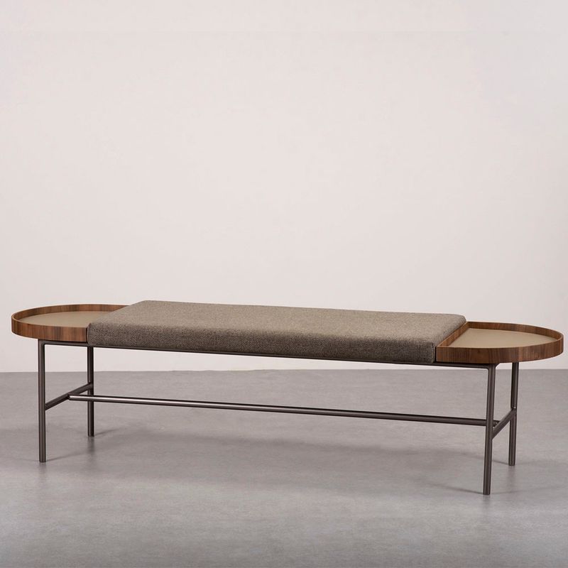 HomeMóveis por AmbienteSala de EstarBancoBanco Lore com 02 Bandejas Trama Fendi Base Aluminium - 77129