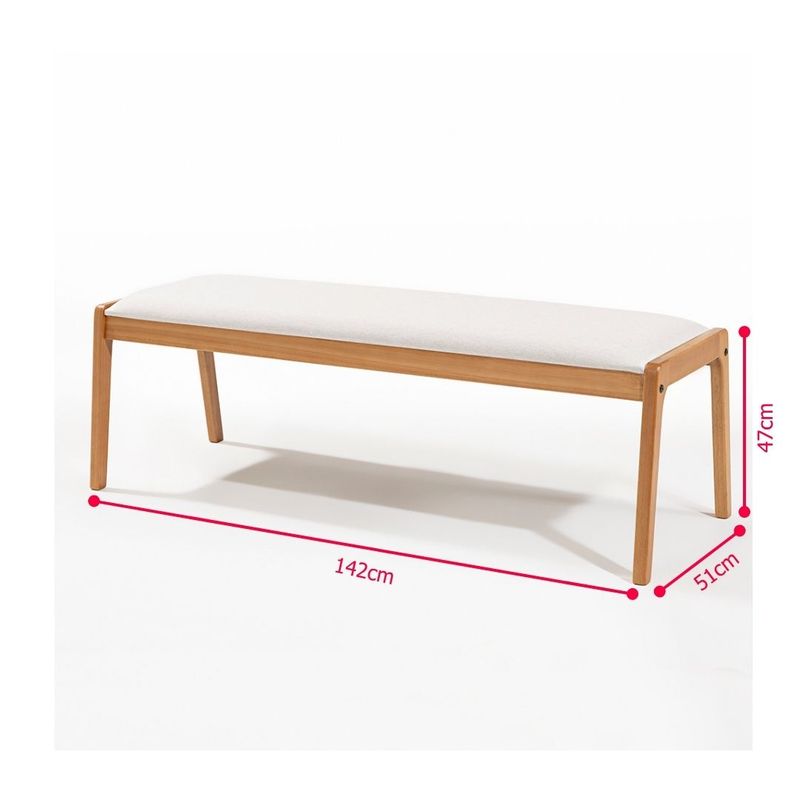 Banco Suez Estrutura Madeira Estofado cor Cru Calandro 142cm