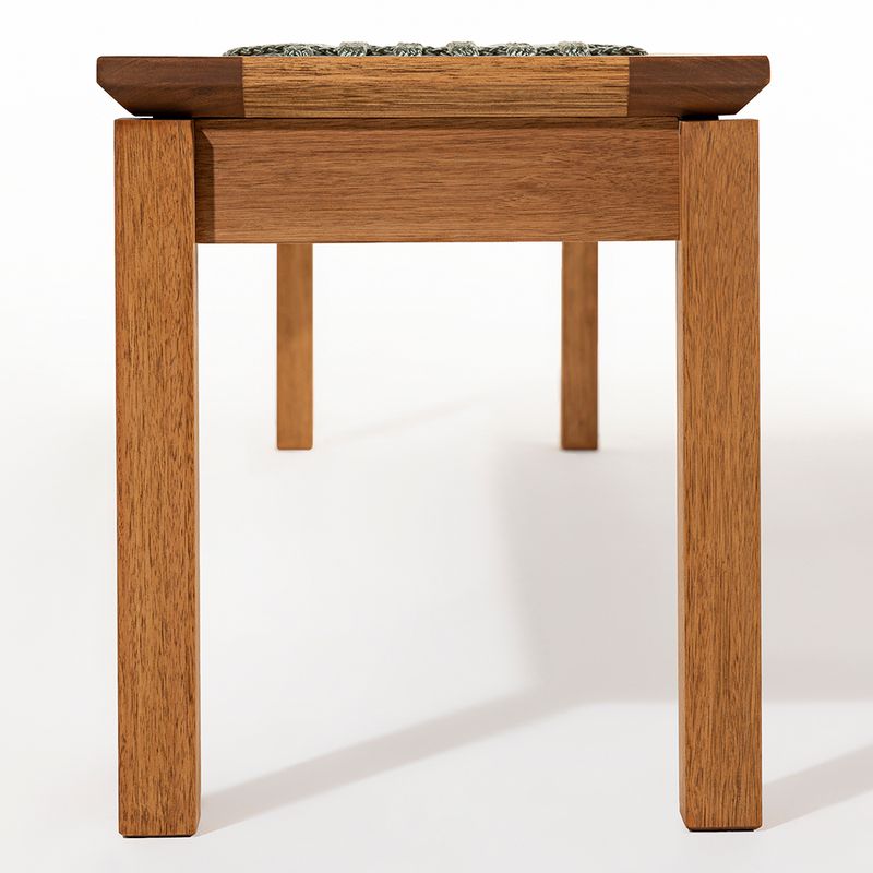 Apresentamos o Banco Trama 3 Lugares, uma peça que combina design, conforto e responsabilidade ambiental de forma impecável.O assento é feito de corda trançada na cor verde oliva, um material que não só traz um toque de cor e um ar sofisticado para o ambiente, mas também é eco-friendly, sendo produzido 100% a partir de PET reciclado. Essa escolha sustentável confere ao banco uma textura única e uma estética moderna.A estrutura do assento é fabricada em madeira maciça de 20mm, garantindo durabilidade e estabilidade. Um dos destaques da peça são as bordas chanfradas em madeira de 34mm de espessura. Esse acabamento detalhado não só adiciona um toque robusto ao design, mas também realça a beleza e a qualidade da madeira.O stain na tonalidade jatobá traz profundidade e riqueza à estrutura de madeira, criando um belíssimo contraste com a corda verde oliva. Essa combinação remete à natureza com um toque de sofisticação, tornando o banco uma peça-chave em projetos com estética orgânica, contemporânea ou rústica. O stain também desempenha um papel funcional essencial, protegendo a madeira contra umidade, fungos e raios UV.O Banco Trama é a escolha ideal para quem busca uma mobília que harmonize funcionalidade e consciência ambiental, sem abrir mão do estilo e da elegância.