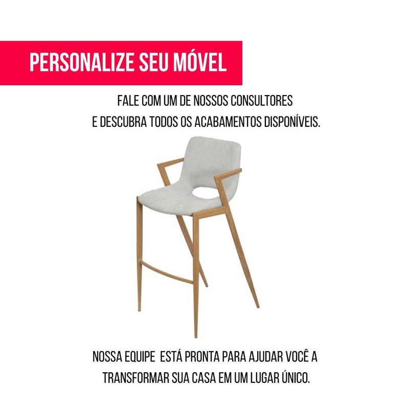 A Banqueta Mila é a perfeita tradução de elegância e conforto em um único mobiliário. Seu design sofisticado, aliado a uma estética contemporânea, transforma cozinhas e bistrôs em espaços de alto padrão. Com linhas suaves e proporções equilibradas, ela adiciona um toque de luxo discreto ao ambiente, tornando qualquer espaço mais acolhedor e refinado. A presença dos braços reforça a sensação de conforto e exclusividade, convidando a momentos agradáveis, seja para um café da manhã tranquilo ou para encontros descontraídos com amigos.Na cozinha, a Banqueta Mila oferece praticidade e estilo, perfeita para bancadas ou ilhas gourmet. Em bistrôs, ela cria uma atmosfera sofisticada e intimista, ideal para quem aprecia design e funcionalidade em equilíbrio. Sua presença marcante valoriza o espaço e proporciona uma experiência de uso confortável e elegante.