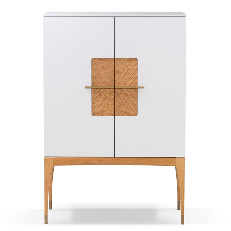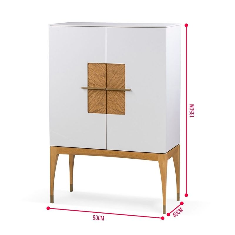 O Bar Preston é a combinação perfeita de elegância, funcionalidade e design contemporâneo, ideal para transformar qualquer ambiente em um espaço sofisticado e acolhedor. Com 90cm de comprimento e 135cm de altura, ele apresenta proporções ideais para quem busca um móvel compacto, mas cheio de estilo e presença.Fabricado em laca Off White acetinada, o Preston oferece um acabamento suave e moderno, enquanto a base em lâmina de Carvalho Amêndoa traz calor e aconchego ao design, criando um contraste harmonioso e elegante. As portas do bar possuem detalhes em lâmina de Carvalho Amêndoa, evidenciando o cuidado com o acabamento e reforçando a sofisticação da peça.Preston conta com 02 portas e prateleiras, oferecendo espaço inteligente para organizar garrafas, taças, acessórios de bar e objetos decorativos, mantendo tudo sempre ao alcance e com estilo.Os puxadores metalizados dourados acrescentam um toque de luxo discreto, elevando o design e combinando perfeitamente com a tonalidade Off White e os detalhes em Carvalho Amêndoa.O Bar Preston é mais do que um móvel funcional: é uma peça de destaque que une praticidade, estilo e sofisticação, perfeita para salas de estar, áreas gourmet ou ambientes integrados, proporcionando charme e personalidade ao espaço.Disponível em outros acabamentos. Consulte-nos!