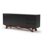 O Buffet Alfenas transformara sua sala de estar ou jantar em um ambiente de requinte e praticidade. A combinacao do preto com os detalhes em madeira confere um toque de sofisticacao e calor, criando um contraste. Ideal para apoiar bandejas, bebidas, objetos decorativos e seu amplo espaco interno com prateleiras e gavetas para organizar loucas, utensilios, objetos decorativos e o que mais voce precisar.