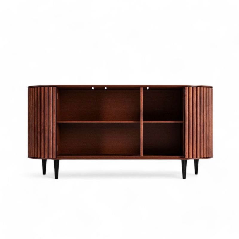 Perfeito para salas de jantar, salas de estar ou ate mesmo halls de entrada, este buffet se adapta a diferentes ambientes e necessidades. Com design diferente, bordas arredondadas e as ripas verticais criam um visual unico e moderno, que se destaca em qualquer espaco e combina com varios estilos de decoracao.