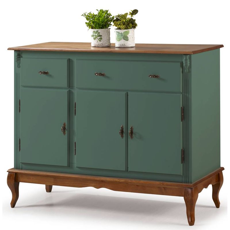 Buffet Bianca Verde Musgo 3 Portas 2 Gavetas Base Imbuia 132cm - 59928