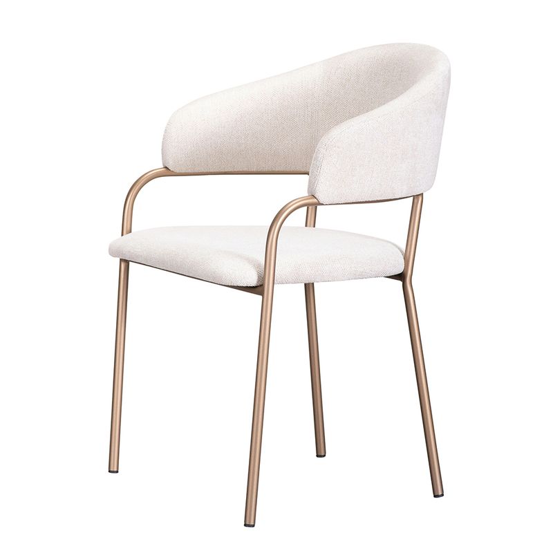 • Seu assento estofado em trama latte e a base metálica na cor champagne garantem um visual refinado e versátil, ideal para salas de jantar, escritórios, home offices, salas de estar e até mesmo quartos ou closets.