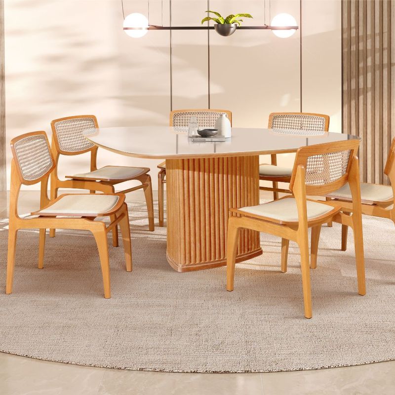 Design Versátil e Clean: Suas formas equilibradas permitem que ela combine facilmente com mesas redondas, quadradas ou retangulares.