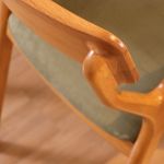 Construção Total em Madeira Maciça: O encosto e a estrutura em madeira sólida garantem resistência extrema e a beleza eterna dos veios naturais da madeira.