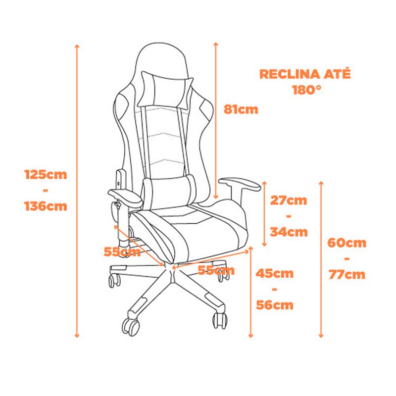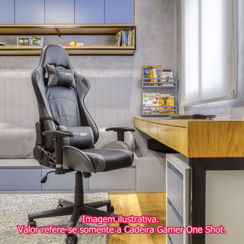 Cadeira Gamer One Shot Corino Preto e Vermelho Base e Rodízio Nylon