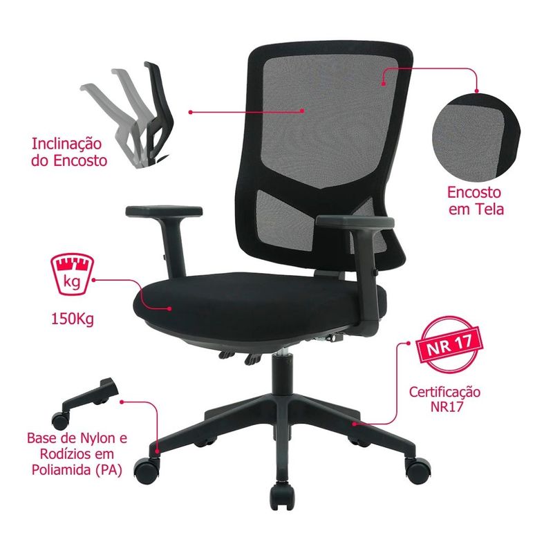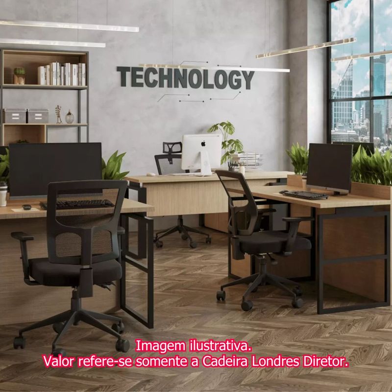 Cadeira Londres Diretor Tela Preta Base Nylon com Rodízio
