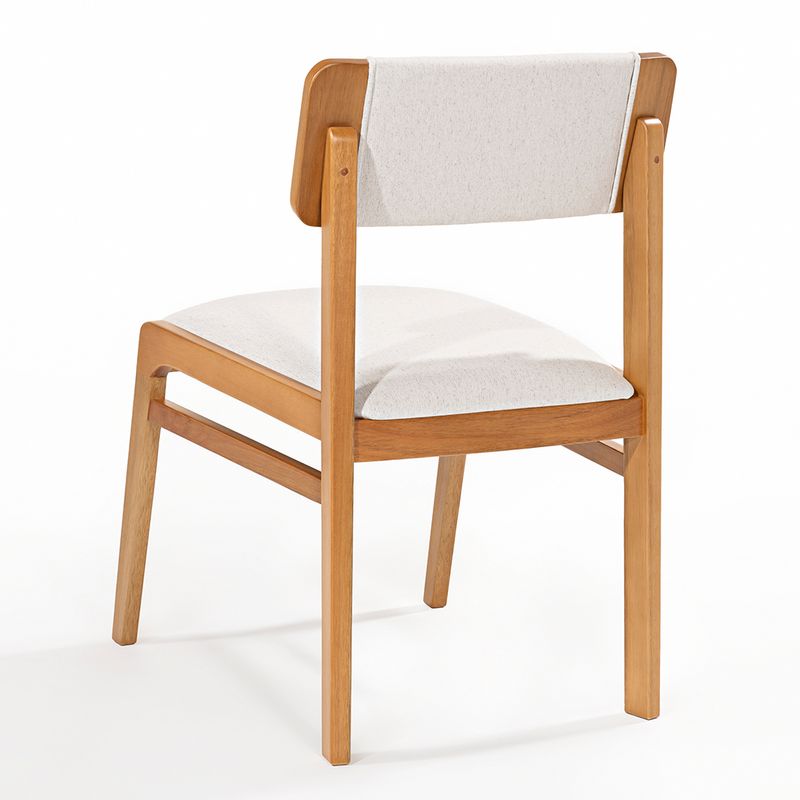 A Cadeira Maya é a escolha perfeita para quem busca aliar sofisticação, conforto e durabilidade em um único mobiliário. Seu design elegante e discreto valoriza ambientes contemporâneos, clássicos ou rústicos, oferecendo versatilidade sem abrir mão da personalidade.Assento e encosto revestidos em tecido cru. O tecido em tom neutro traz leveza visual e suavidade ao toque, proporcionando conforto mesmo em longos períodos de uso. A tonalidade clara do revestimento permite combinações harmônicas com diferentes paletas de decoração, destacando-se pela sua simplicidade refinada.Estrutura em madeira tauari maciça, reconhecida por sua resistência e beleza natural, a madeira tauari confere robustez e longa vida útil à cadeira. A estrutura sólida garante estabilidade, enquanto os veios naturais da madeira trazem autenticidade e um toque artesanal à peça.Com acabamento em verniz na tonalidade mel realça a textura e o tom quente da madeira, criando um contraste sutil e elegante com o tecido cru. Esse acabamento não apenas embeleza, mas também protege a madeira contra o desgaste do tempo e da rotina.Ideal para salas de jantar, cozinhas gourmet, ambientes corporativos ou espaços de convivência, a Cadeira Maya é uma peça que une beleza atemporal e funcionalidade. Um convite ao bem-estar e ao bom gosto em cada detalhe.