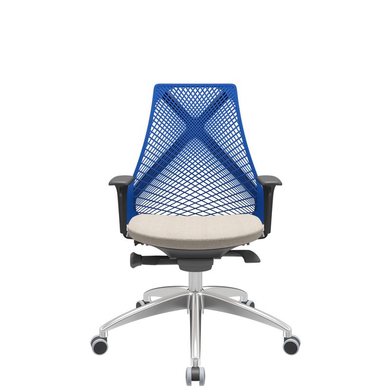 Cadeira Office Bix Tela Azul Assento Poliéster Fendi Autocompensador Base Alumínio 95cm