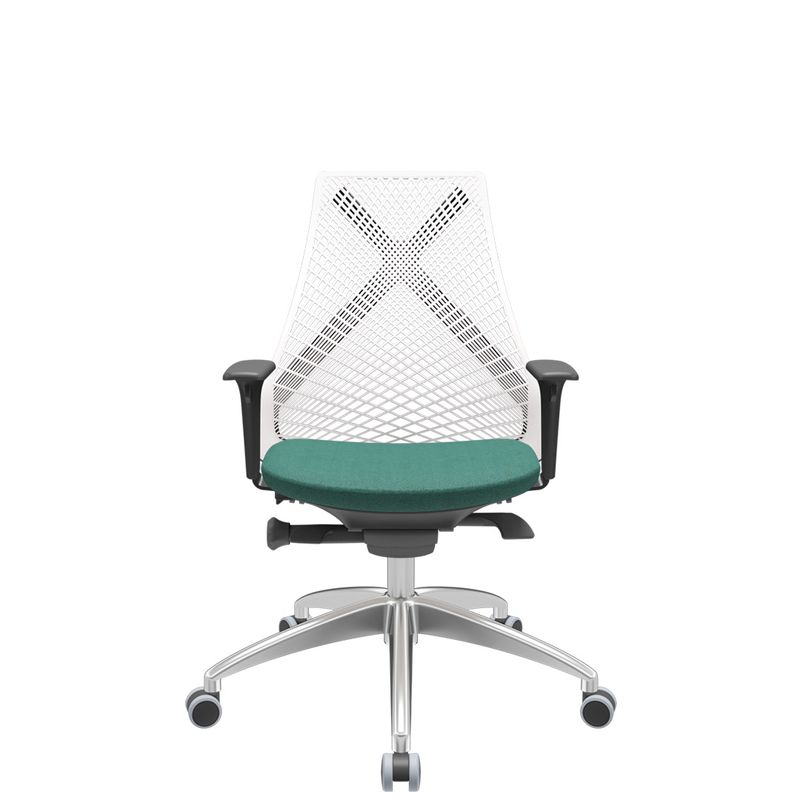 Cadeira Office Bix Tela Branca Assento Poliéster Verde Autocompensador Base Alumínio 95cm - 64014