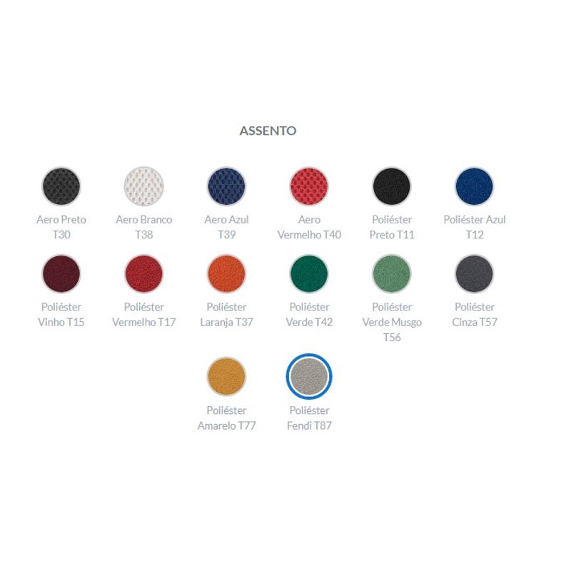 - Estrutura preta e revestimento do encosto em tela em polímero elastomérico cinza;