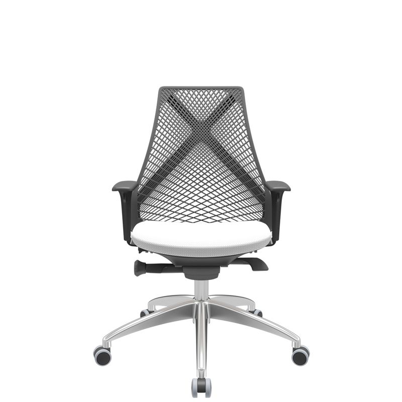 Cadeira Office Bix Tela Preta Assento Aero Branco Autocompensador Base Alumínio 95cm