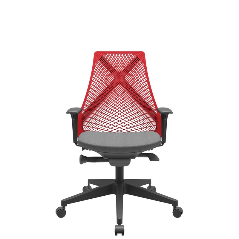 Cadeira Office Bix Tela Vermelha Assento Poliéster Cinza Autocompensador Base Piramidal 95cm - 64029