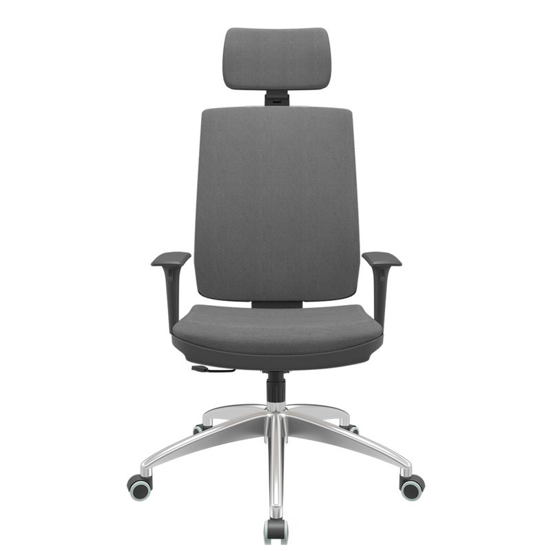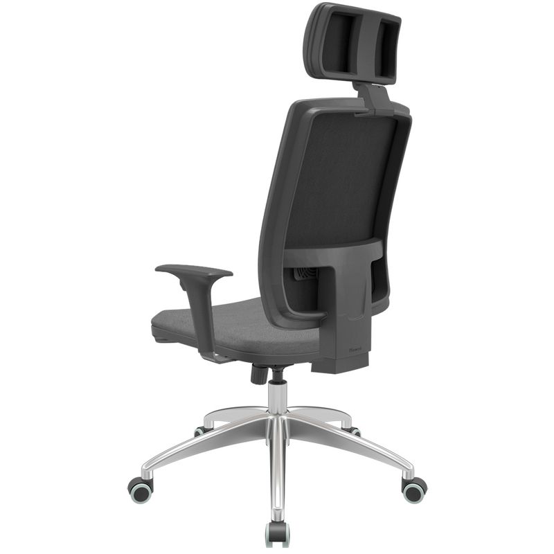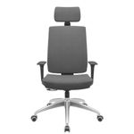 Cadeira Office Brizza Soft Poliester Cinza RelaxPlax Com Encosto Cabeça Base Aluminio 126cm