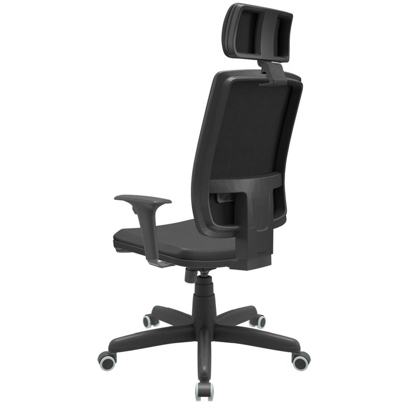 - Contém encosto de cabeça e rodízios em PU 50mm que não riscam o piso;