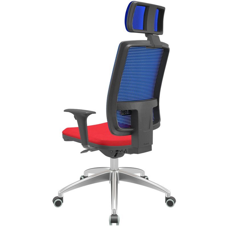 Cadeira Office Brizza Tela Azul Com Encosto Assento Poliéster Vermelho Autocompensador 126cm - 63148