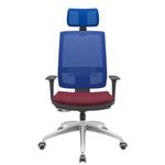 Cadeira Office Brizza Tela Azul Com Encosto Assento Poliester Vinho RelaxPlax Base Aluminio 126cm