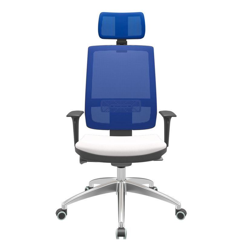 Cadeira Office Brizza Tela Azul Com Encosto Assento Vinil Branco Autocompensador 126cm - 63165