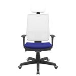 HomeMóveis por AmbienteEscritórioLinha Brizza Presidente TelaCadeira Office Brizza Tela Branca Com Encosto Assento Aero Azul Autocompensador Base Standard 126cm - 63436