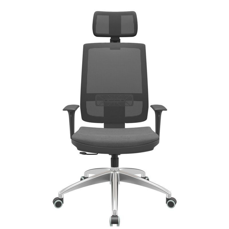 Cadeira Office Brizza Tela Preta Com Encosto Assento Poliester Cinza RelaxPlax Base Aluminio 126cm