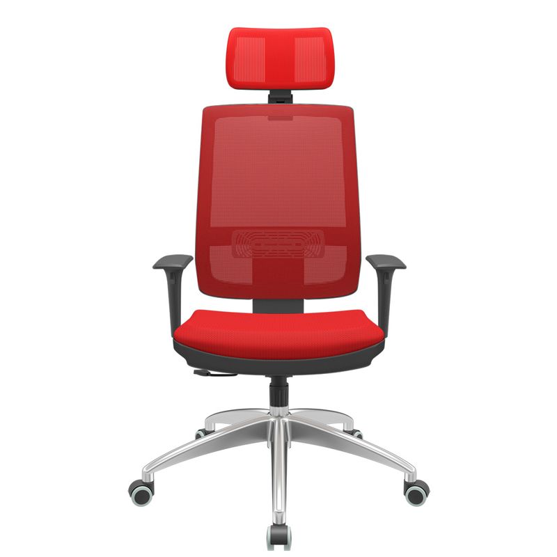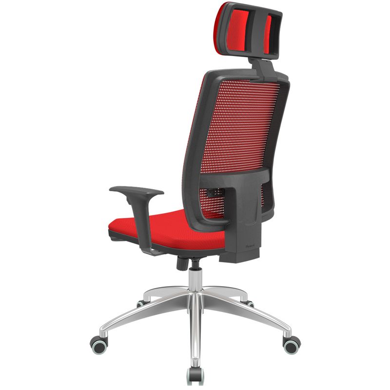 Cadeira Office Brizza Tela Vermelha Com Encosto Assento Aero Vermelho RelaxPlax Base Aluminio 126cm