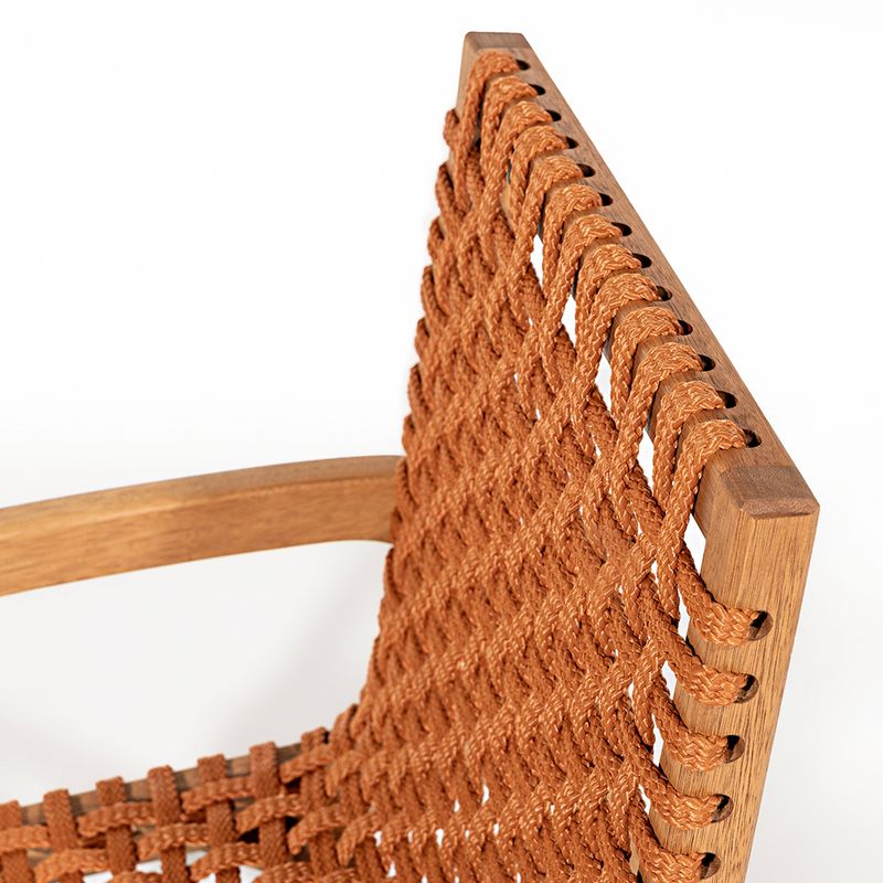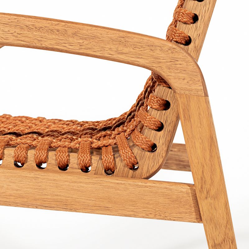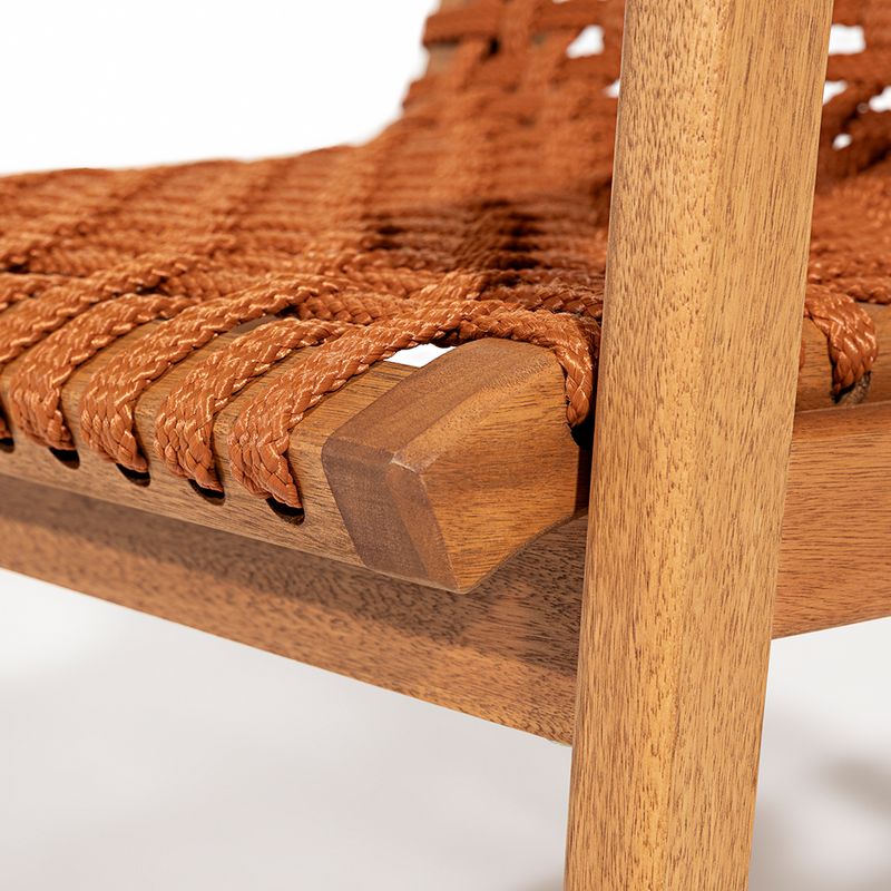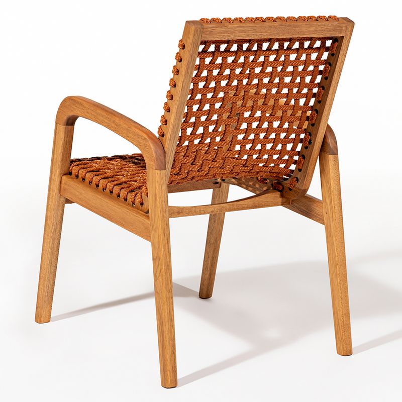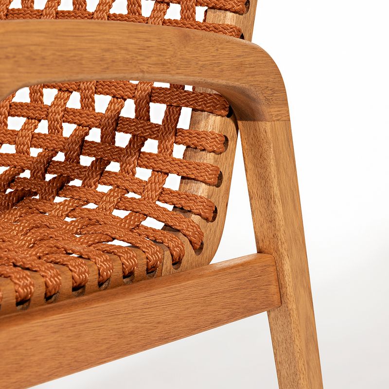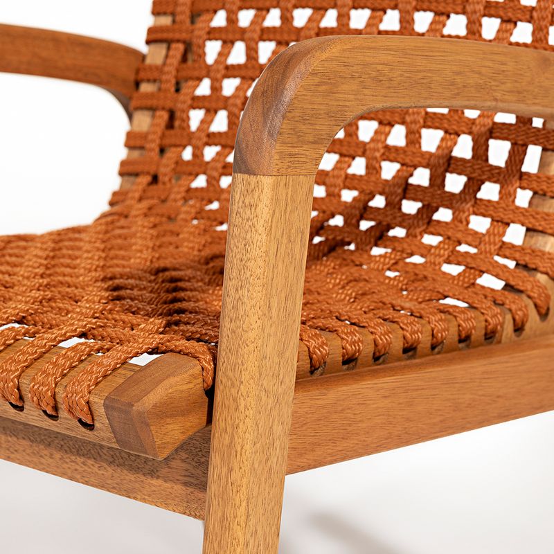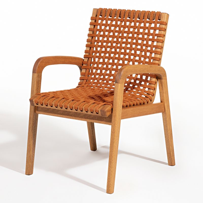 A Cadeira Trama com Braço é uma peça que combina elegância e conforto com a robustez da madeira de eucalipto. Sua estrutura, feita em madeira de reflorestamento, recebe um acabamento em stain na cor Jatobá, que valoriza a textura natural da madeira, ao mesmo tempo que oferece proteção contra desgastes e intempéries, garantindo durabilidade mesmo em ambientes de uso intenso.O destaque da cadeira fica por conta do assento e encosto em corda chata de 22 mm na cor Ocre, um tom quente e terroso que traz uma sensação acolhedora e sofisticada ao móvel. O trançado em corda cria um suporte ergonômico, que une conforto e resistência, ideal para quem busca uma experiência agradável ao sentar.A tonalidade ocre é perfeita para quem deseja adicionar um toque de cor sutil e natural à decoração, especialmente em ambientes internos ou áreas externas cobertas, como varandas e espaços gourmets. Essa cor harmoniza facilmente com tons neutros, verdes de plantas e elementos rústicos, criando um ambiente aconchegante e cheio de personalidade.Com seus braços confortáveis e design atemporal, a Cadeira Trama com Braço é uma escolha versátil para quem quer aliar funcionalidade e estilo em qualquer espaço.