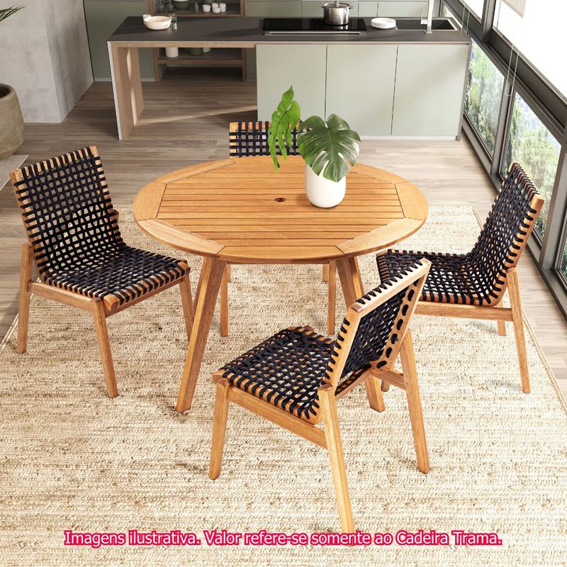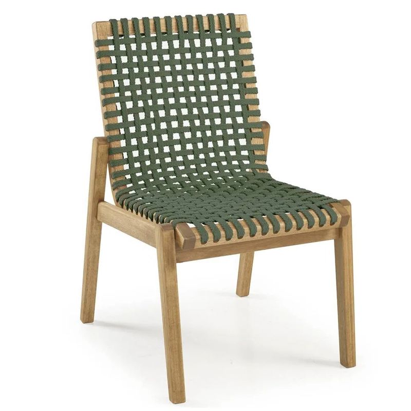 O contraste perfeito entre a madeira e o trançado artesanal da corda verde transforma a Cadeira Trama em uma peça elegante e cheia de charme. Sua estrutura é produzida em madeira maciça de eucalipto de reflorestamento, com acabamento em stain na cor Jatobá, que realça a beleza natural e garante proteção ao móvel.O assento e o encosto são confeccionados com corda trançada verde de 22 mm, feita em PET 100% reciclado, unindo sustentabilidade, conforto e durabilidade. O design versátil e contemporâneo permite inseri-la em diversos ambientes, desde salas e quartos até varandas e espaços gourmet, criando um clima aconchegante e sofisticado.Parte da Linha Trama, a cadeira pode ser combinada com outros móveis da coleção, como cadeiras com braços, bancos, sofás e mesas, para compor um conjunto harmonioso.A Cadeira Trama é a união de sofisticação, consciência ambiental, inovação e conforto.