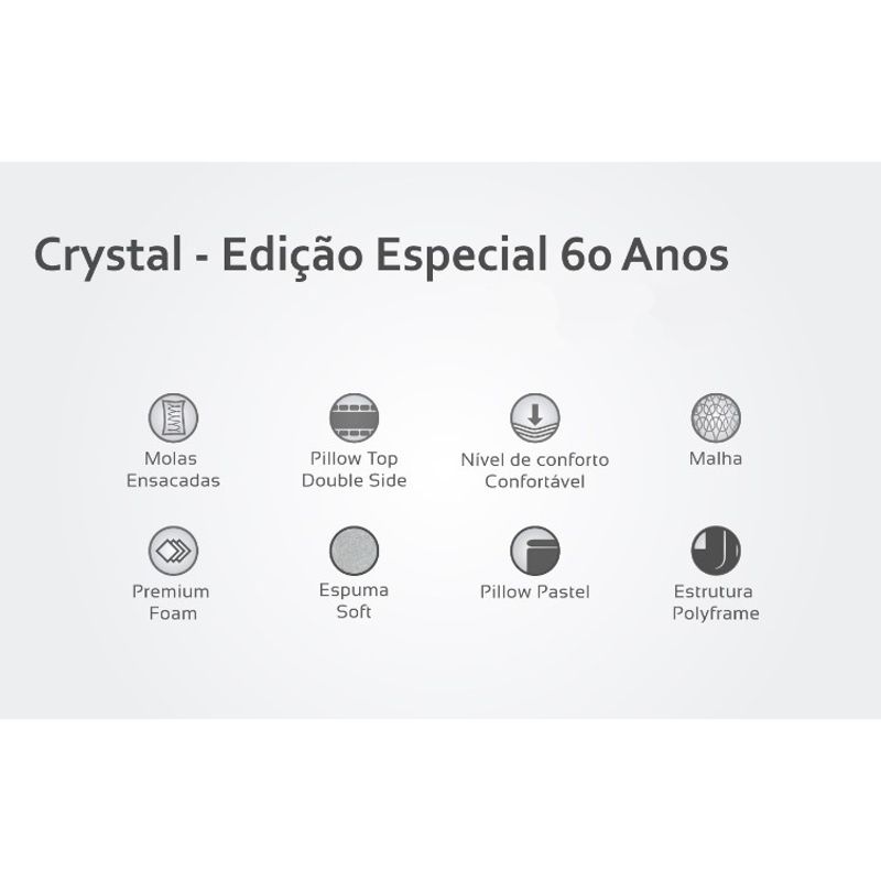 - O colchão Crystal Edição Especial é sucesso desde o seu primeiro lançamento, volta reformulado, porém, com a mesma qualidade construída nestes 60 anos de história.