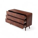 Design contemporaneo, com linhas limpas e um acabamento sofisticado. Seu estilo minimalista permite que ela se adapte facilmente a diversos ambientes, desde quartos ate salas de estar.A estrutura da comoda e feita em madeira de eucalipto, garantindo durabilidade e resistencia.