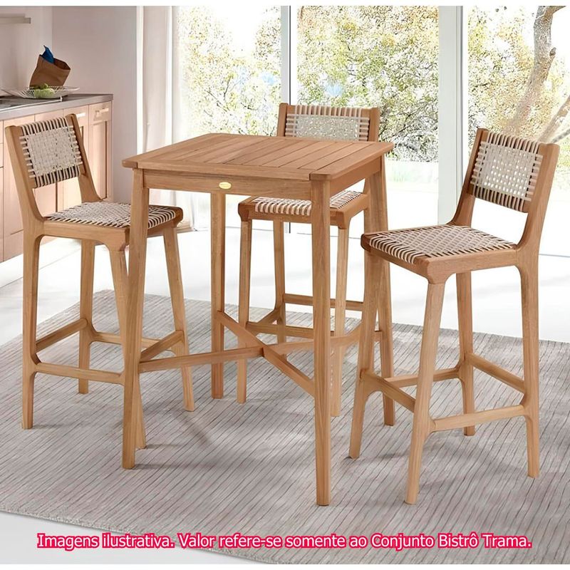 O Conjunto Bistrô Trama foi criado para quem busca unir estilo, durabilidade e conforto em momentos descontraídos. Composto por 01 Mesa Bistrô Trama Quadrada de 100cm e 02 Banquetas Altas Trama de 106cm com assento em corda chata PET 100% reciclado, é perfeito para transformar varandas, áreas gourmet ou cantinhos especiais em verdadeiros pontos de encontro.A estrutura em madeira de eucalipto com acabamento em stain na cor jatobá confere resistência às variações climáticas, preserva a beleza natural da madeira e garante longa vida útil ao conjunto. O stain cria uma camada protetora que mantém o tom e a textura da madeira, valorizando seu aspecto rústico e sofisticado.A corda chata PET 100% reciclado na cor rami não só é ecologicamente correta, como também oferece conforto ao sentar e um visual acolhedor. Sua tonalidade neutra combina facilmente com diferentes estilos de decoração, do rústico ao moderno.A Linha Trama é reconhecida por seu design atemporal, funcionalidade e compromisso com a sustentabilidade, utilizando materiais reciclados e madeira de reflorestamento. Cada peça é pensada para oferecer conforto e estética, resultando em móveis que resistem ao tempo e valorizam qualquer espaço.Escolher o Conjunto Bistrô Trama é investir em momentos únicos, cercados de charme, conforto e consciência ambiental. Conheça toda a Linha Trama e descubra como ela pode transformar seu lar.