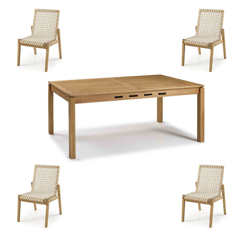 Detalhes do ProdutoConjunto composto por:01 Unidade de Mesa Jantar Trama Madeira Stain Jatobá Corda Preta 220cm04 Unidades Cadeiras Trama Corda Areia Estrutura Stain Jatobá 52cmDisponível em outros acabamentos. Consulte-nos!