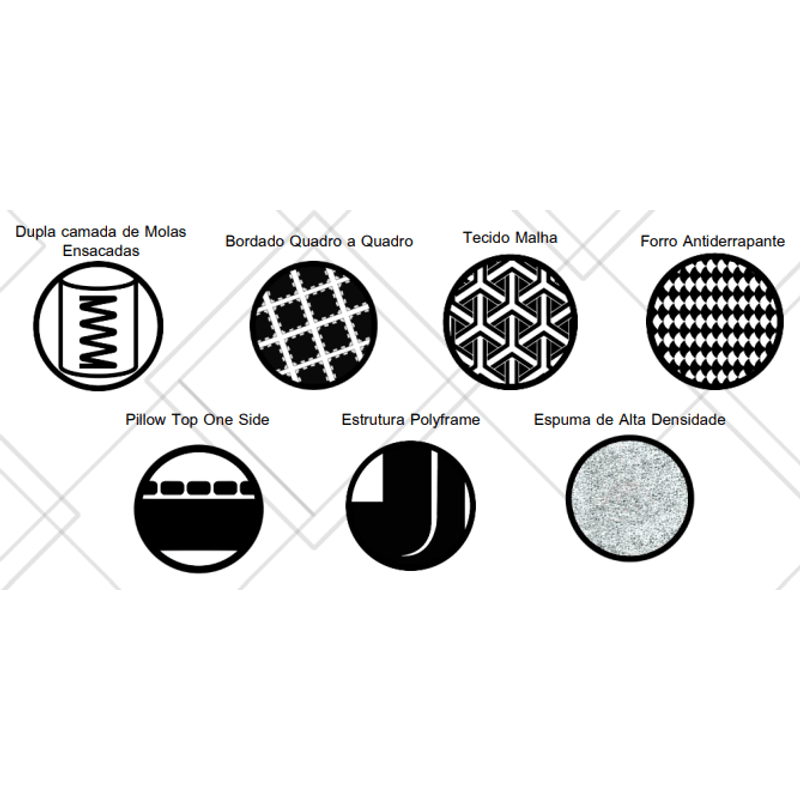 Pillow Top One Side, revestido em malha 198g, fios de poliéster e elastano, permite apenas o giro periódico do colchão, sem a necessidade de vira-lo constantemente, garantem conforto, maciez e suavidade da peça.