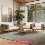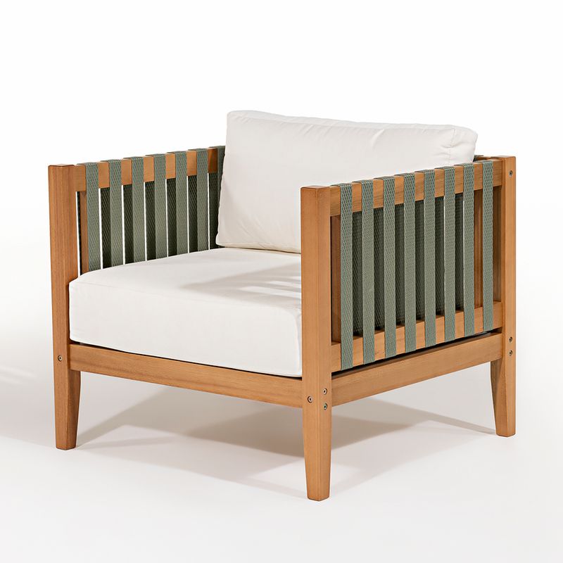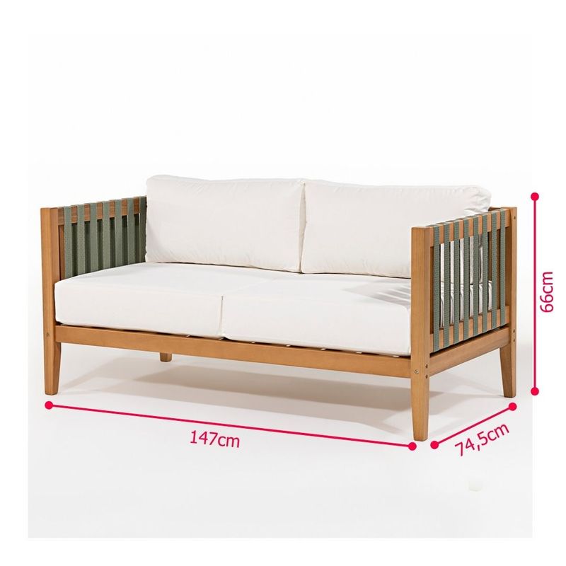 O Conjunto Aurora foi cuidadosamente elaborado para transformar seu ambiente de convivência em um espaço sofisticado, aconchegante e cheio de estilo. Composto por sofá de 02 lugares e 02 poltronas, foi projetado para oferecer o máximo em conforto, praticidade e estilo. De estrutura robusta assegura durabilidade, enquanto o assento e o encosto proporcionam uma experiência de conforto superior. As almofadas, revestidas com tecido Acquablock na cor Areia, garantem um visual clean e sofisticado, além de oferecerem resistência à umidade e manchas.Encostos e laterais em fita náutica na cor Verde Oliva adicionam um toque náutico e sofisticado ao conjunto, trazendo um contraste sutil e elegante.Já a Mesa Lateral Centro Aurora é ideal para apoiar objetos como livros, taças de bebida ou itens decorativos. Seu design compacto e funcional combina com o estilo contemporâneo do conjunto, além de facilitar a circulação no ambiente. A mesa complementa a composição, proporcionando praticidade sem abrir mão do charme estético.Todos os itens, possuem a estrutura em madeira Tauari com acabamento em verniz na cor Mel, conferindo durabilidade e um visual refinado.O Conjunto Aurora é a escolha ideal para quem deseja unir conforto, durabilidade e um design contemporâneo. Seja para um espaço de convivência familiar ou para receber convidados, este conjunto certamente elevará o estilo do seu ambiente, criando um espaço acolhedor e cheio de personalidade.