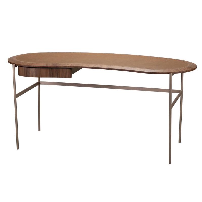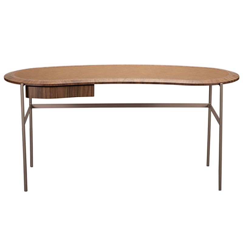 A Escrivaninha Eternity é a peça perfeita para quem busca aliar elegância, conforto e sofisticação no ambiente de trabalho, especialmente para transformar o seu home office em um espaço refinado e moderno. Na versão com gaveta, é um exemplo de design atemporal que combina materiais de alta qualidade, acabamentos impecáveis e uma paleta de cores que exala requinte.Seu tampo em lâmina de madeira na cor nogueira, recebe fundo em recouro caramelo, é um material que adiciona uma textura rica e um toque de luxo ao design. O recouro caramelo traz uma sensação de aconchego e sofisticação ao ambiente,A base da Escrivaninha Eternity é feita de aço carbono, com acabamento metalizado na mesma tonalidade de champagne, criando uma continuidade elegante e moderna no design. Esse material é altamente resistente e confere estabilidade à escrivaninha, ao mesmo tempo em que adiciona um toque contemporâneo e arrojado. Na versão com gaveta, da Escrivaninha Eternity não apenas contribui para o design sofisticado, mas também é uma solução prática para manter o ambiente de trabalho organizado. Com espaço suficiente para armazenar materiais essenciais, ela garante que o home office se mantenha limpo e livre de distrações, sem perder o toque de requinte que a peça oferece.Com a Escrivaninha Eternity, o seu home office ganha um toque de luxo e um ambiente de trabalho mais confortável, tornando cada momento de dedicação ao trabalho mais prazeroso e produtivo. Ideal para quem busca um equilíbrio perfeito entre beleza e funcionalidade.