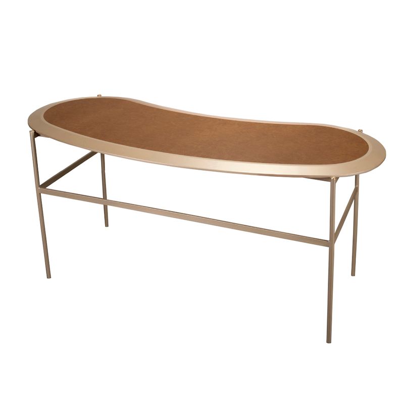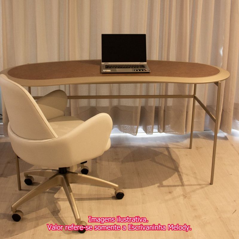A Escrivaninha Eternity é uma peça de design sofisticado, ideal para ambientes de home office, que une funcionalidade e luxo. Seu tampo é revestido com pintura laca na cor champagne, o que confere um acabamento suave e brilhante, refletindo a luz de maneira sutil e criando uma atmosfera leve e sofisticada. A pintura laca é resistente, garantindo que a peça mantenha sua beleza ao longo do tempo, sem comprometer a durabilidade.A base, em aço carbono, recebe um acabamento metalizado champagne que reflete sutis toques de luz, e as ponteiras em latão adicionam sofisticação ao conjunto, garantindo robustez e estabilidade. O tampo apresenta bordas chanfradas, promovendo ergonomia e conforto durante o uso, sem perder a beleza do design orgânico.Com sua combinação de materiais nobres e detalhes cuidadosos, a Escrivaninha Eternity transforma qualquer espaço de trabalho, oferecendo um ambiente de luxo, estilo e eficiência. Ideal para quem busca um móvel que inspire produtividade e requinte no dia a dia.