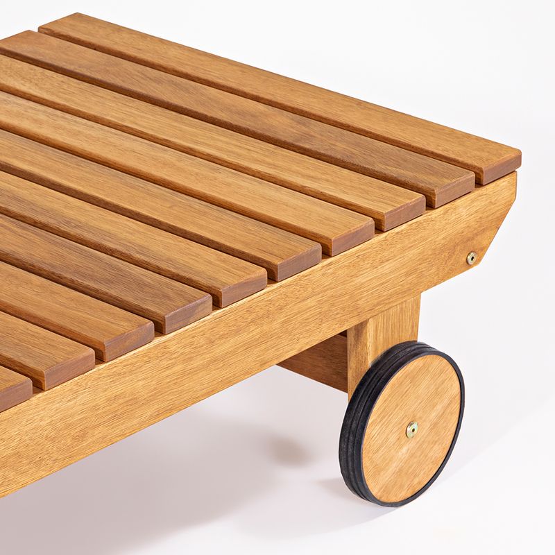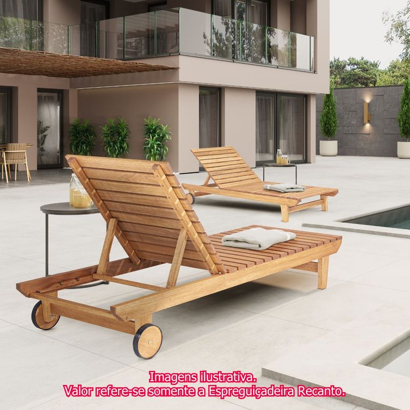 Espreguiçadeira Recanto, conforto e estilo para seus momentos de lazer ao ar livre. Transforme sua área externa em um refúgio de relaxamento e sofisticação.Projetada para harmonizar perfeitamente com a natureza, esta peça é a escolha ideal para quem busca durabilidade, beleza e o máximo conforto em seu jardim, varanda ou, especialmente, na beira da piscina.A Espreguiçadeira Recanto é meticulosamente fabricada em madeira Liptu, uma matéria-prima reconhecida por sua robustez e resistência natural às condições climáticas externas. A escolha do Liptus garante uma espreguiçadeira durável, capaz de suportar o uso frequente e as variações do tempo sem perder sua integridade estrutural.Para realçar ainda mais sua beleza e proteger a madeira, acabamento em Stain na cor Jatobá. Este tratamento penetra profundamente nas fibras da madeira, criando uma barreira protetora contra a umidade, os raios UV e o ataque de fungos. O resultado é uma peça com um tom quente e vibrante, que mantém sua cor e brilho por muito mais tempo, exigindo mínima manutenção.Perfeita para um banho de sol tranquilo à beira da piscina ou relaxando com um bom livro em seu jardim. A Espreguiçadeira Recanto é perfeita para esses momentos, oferecendo um design ergonômico que se adapta ao corpo, proporcionando o suporte ideal para horas de descanso e lazer. A Espreguiçadeira Recanto é o complemento ideal para os demais itens da Linha Recanto. Ao integrá-la com as mesas de centro, bancos e cadeiras da mesma coleção, você cria um ambiente externo coeso e visualmente deslumbrante. Espreguiçadeira Recanto, um toque de elegância, conforto e durabilidade à sua área externa, criando um convite irrecusável para desfrutar da vida ao ar livre.