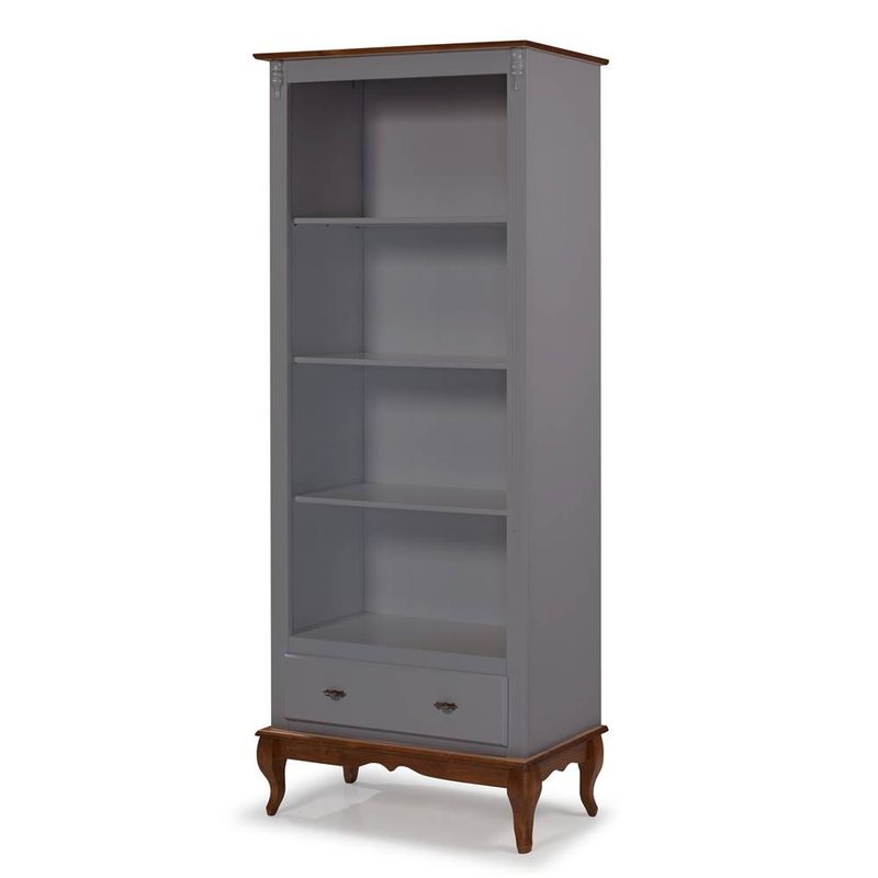 Estante Jone Cinza Escuro 3 Prateleiras 1 Gaveta Base Imbuia 205cm - 59876