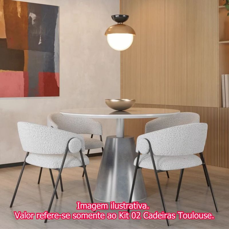 Kit 02 Cadeiras Toulouse Bouclé Cinza Base Preta