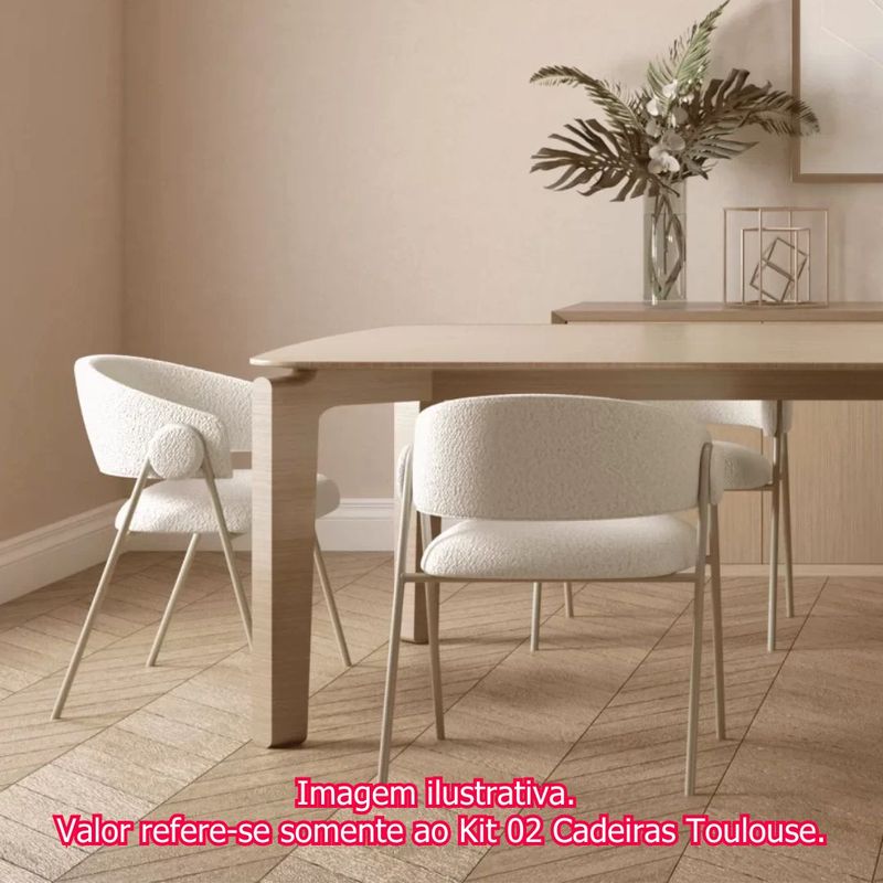 Kit 02 Cadeiras Toulouse Bouclé Nude Base Champagne