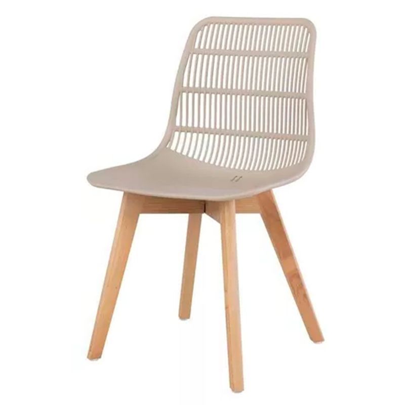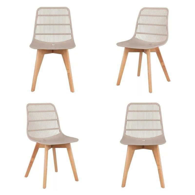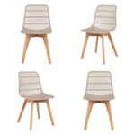 Kit 04 Cadeiras Agnes Assento Nude Base Madeira