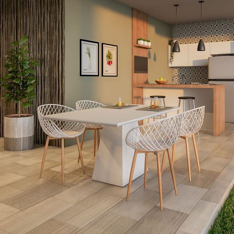 Kit 04 Cadeiras Clarice Assento Nude Base Metal