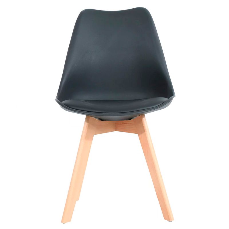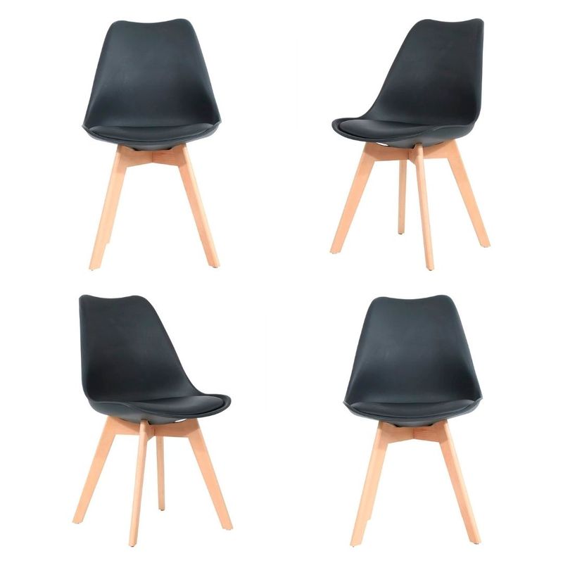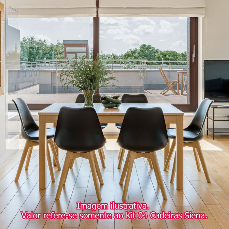Kit 04 Cadeiras Siena Preto Base Madeira Natural