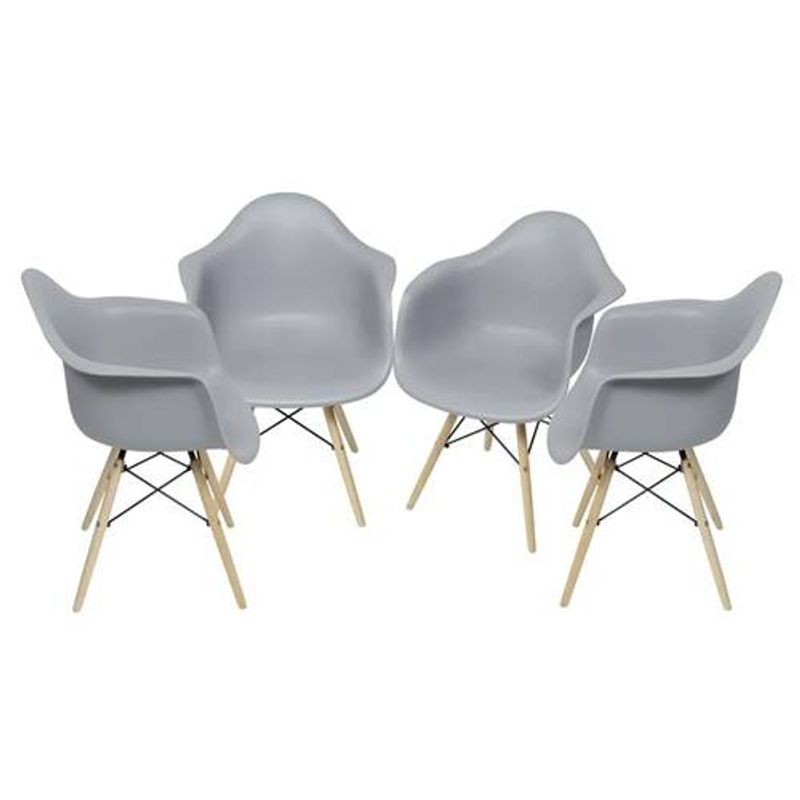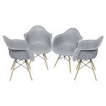 Kit 4 Cadeiras Eames com Braco Cinza Base em Madeira - 64681