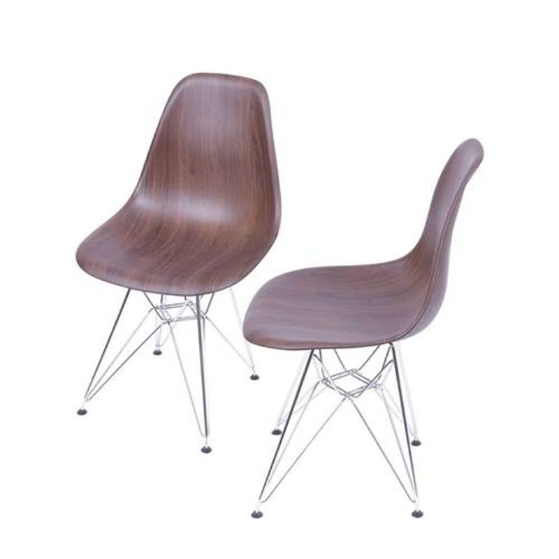 Kit com 2 Cadeiras Eames Base Cromada Cor Madeira Escura